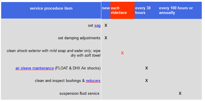 Suspension Service Intervals