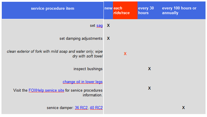 Fox Racing Shocks Service Intervals