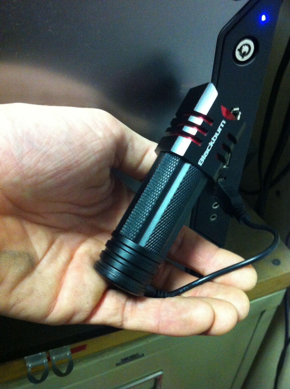 Blackburn Scorch has an indicator the changes from green (fully charged) to red (needs charging) to let you know when you need to charge it.