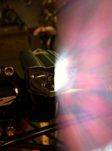 The front light has 3 modes, most of the time I use the flashing mode. When times are dark, and street lights are not around, the solid high beam of the Super Flea does the job of illuminating my ride just fine.